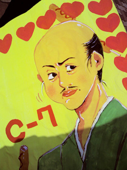 で、写真はクラスの模擬店の看板に描いたオッサン。